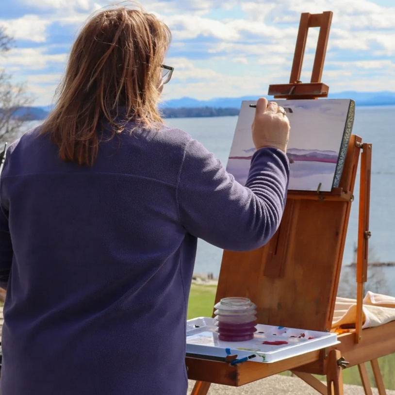 I thoroughly enjoy the beauty of color, composition and layering colors. As a graphic designer, I bring my design skills into my paintings, looking at scale and spacial relationships within compositions. I see color every day in nature, no matter what time of year it is. Inspired by color, texture and shapes, I continually explore and paint subjects that fulfill me creatively. As I paint, I love painting color within color, color next to color and layering colors. Color is my life. I work with a limited palette, aiming for a harmonious palette. My mediums are watercolor, oil and pastel.